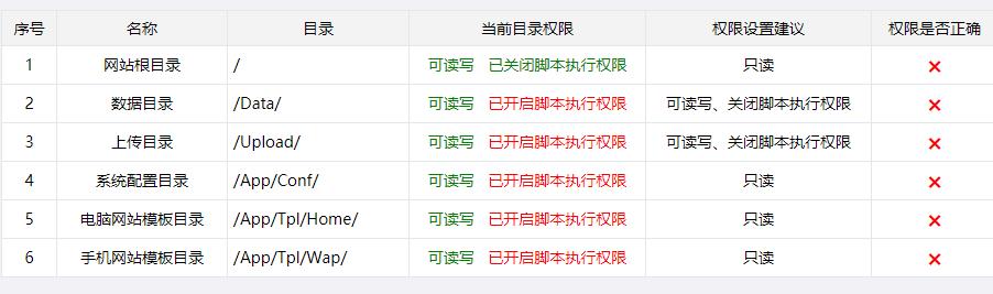 设置完成以后,在安全设置页面里,可以看到没有权限是否设置正确,请参见表格的【权限是否正确】列。