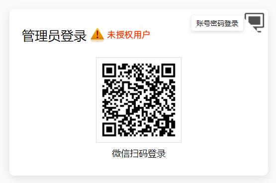 绑定成功以后,退出后台,返回到登录页面,即可看到扫码登录,点击右上角图片可以在账号密码登录和扫码登录之前进行切换