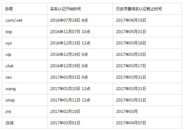 开始认证时间和存量域名认证截止时间如下: