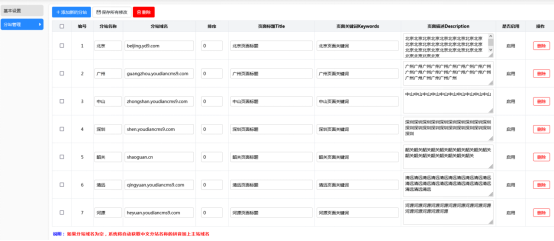 注意,以下操作都是先开启了分站管理功能。若没开启,请参考“第一部分 第2点:开启城市分站功能”
