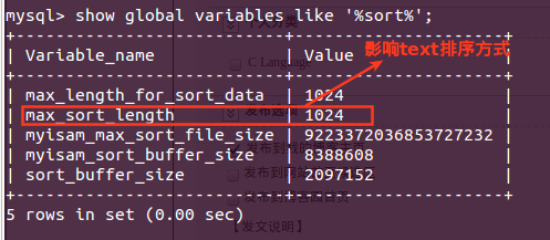 (2)排序方式不同于其他字符类型,不会按照完整长度进行排序,而只是按照max_sort_length规定的前若干个字节进行排序。