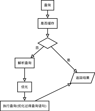 > 在解析查询之前,服务器会“询问”是否进行了查询缓存(只能缓存SELECT语句和相应结果)。缓存过的直接返回结果,未缓存的就需要进行解析查询,优化,重新执行返回结果。