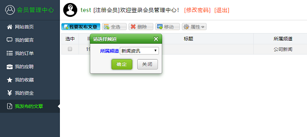 图一:选择对应的栏目发布文章