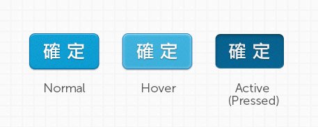 抑或是同一个按钮在不同的状态下想利用透过些微的色彩变化来给予使用者回馈,例如这边利用加亮以及加暗来模拟「发光」以及「凹陷」的效果,这时候都会需要更多同色系的色彩来辅助: