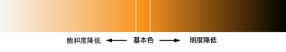 我们可以利用黑色与白色,透过不同透明度的叠加在原始色彩中,以取得同色系的色彩:
