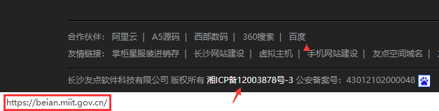 进入首页,鼠标放在备案号上面,如果下面出来工信部的网址:https://beian.miit.gov.cn ,说明添加成功