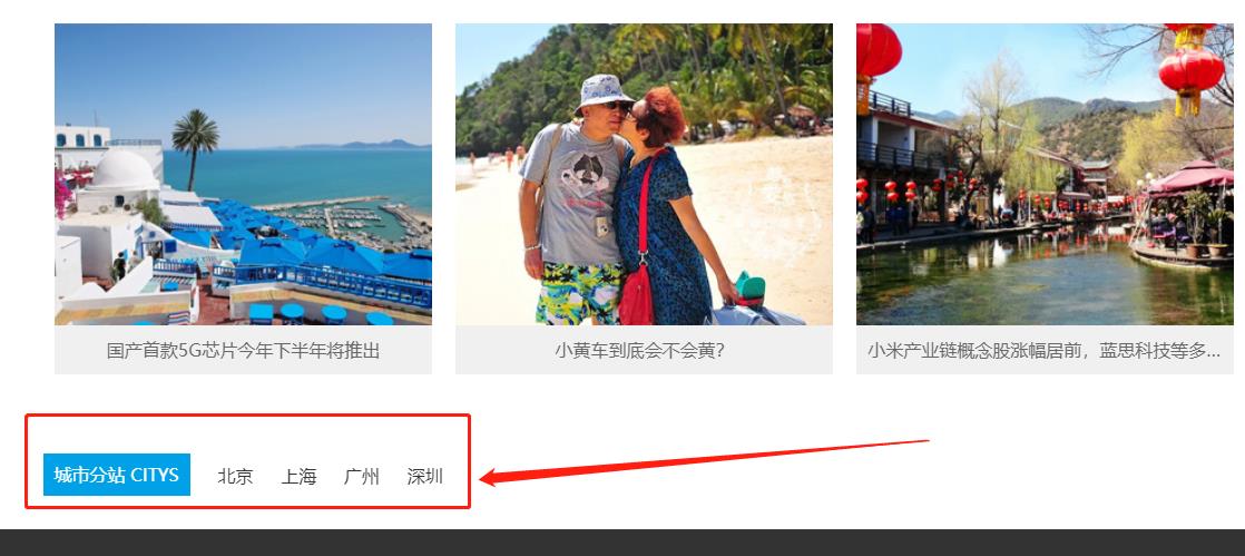 把多城市分站组件添加在前端页面任意你想添加的位置,如页头或页脚。