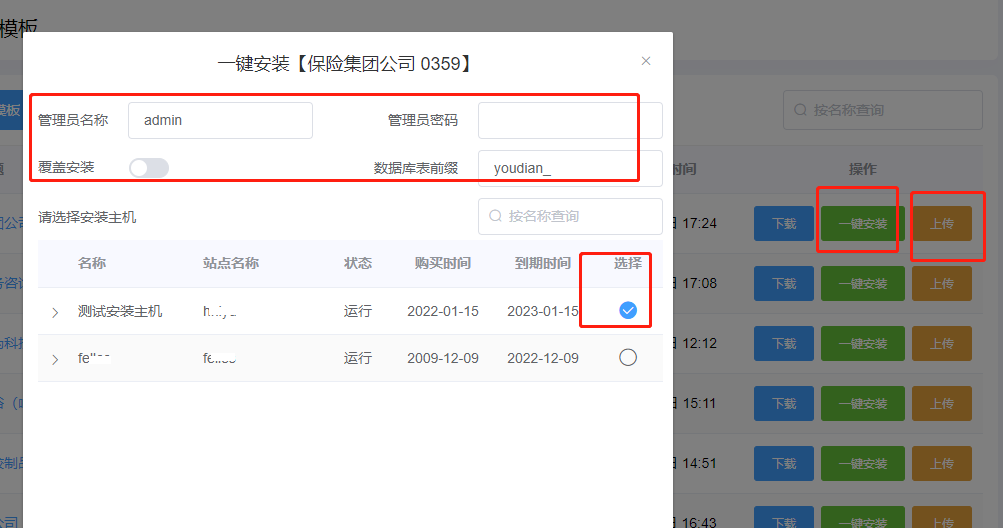 在购买好的模板后面,点击“一键安装”,即可快速的安装好网站模板!