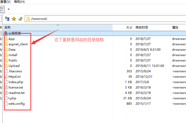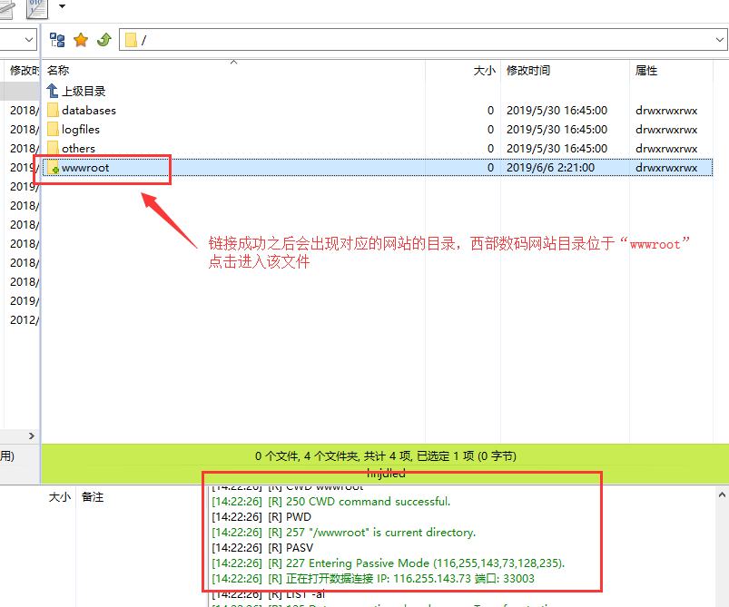 3.找到对应的存放网站的目录“西部空间”网站目录位于WWWROOT根目录下
