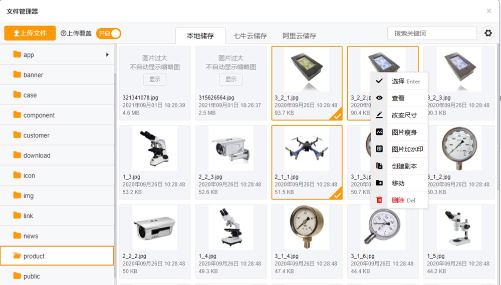 1、【增加】实现新版文件管理器弹框,可以管理本地、七牛云存储、阿里云存储;编辑文章时,可以直接从文件管理选择